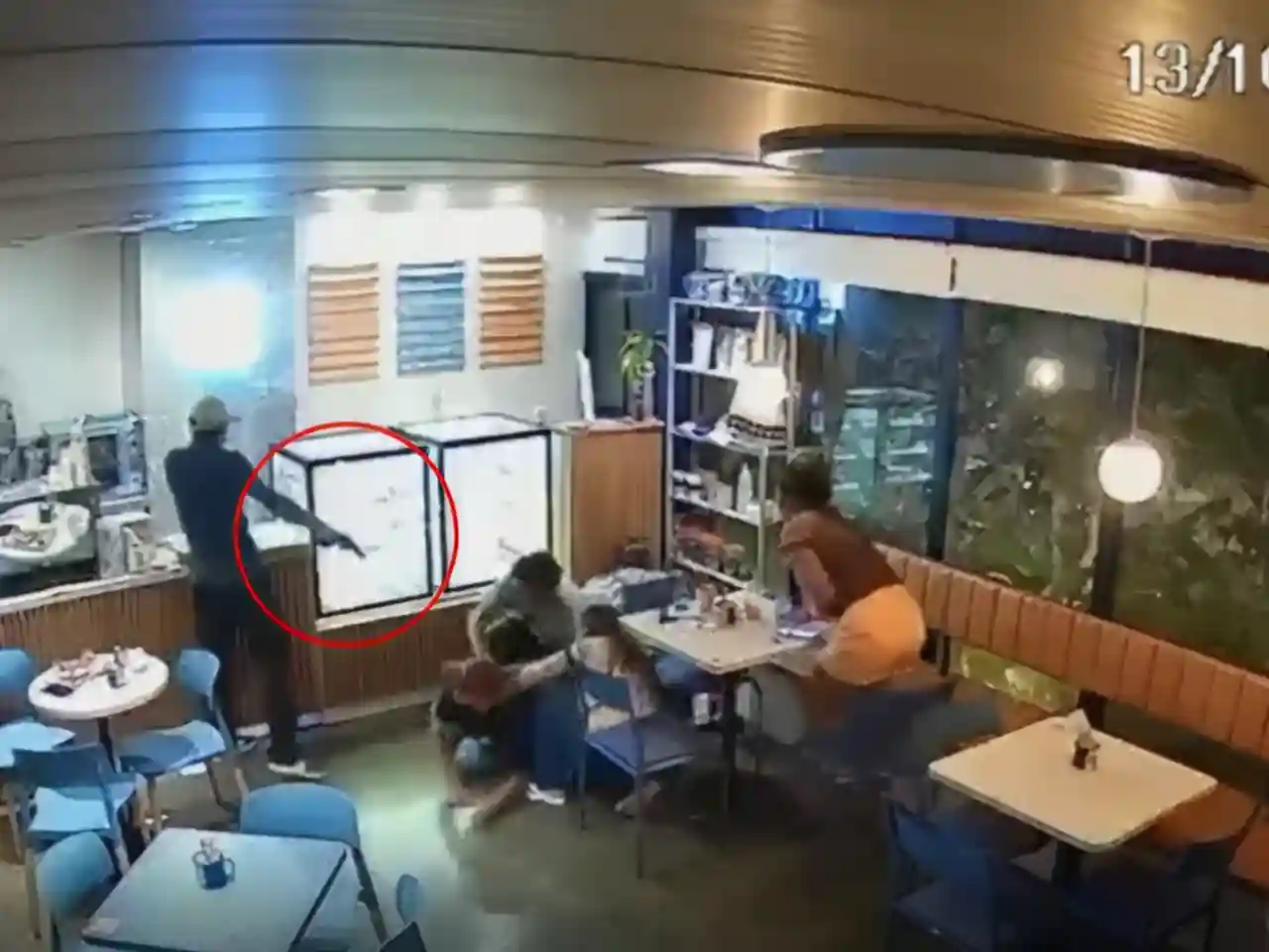 Nas imagens obtidas pela reportagem, é possível ver o momento em que um dos homens se levanta, saca uma arma de fogo e rende uma funcionária que estava próxima ao balcão. Em seguida, o segundo suspeito começa a recolher pertences dos clientes, como celulares, bolsas e carteiras.
