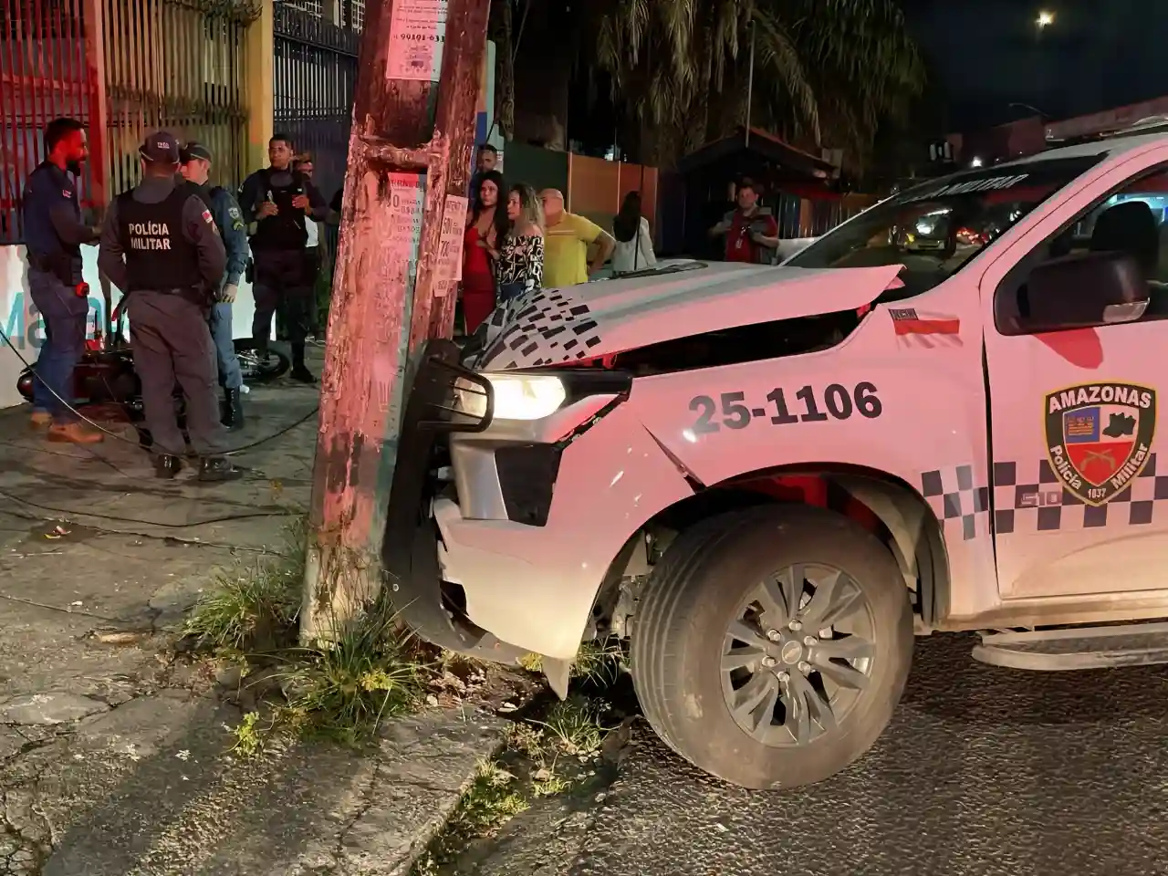 Manaus (AM) — Uma viatura da Polícia Militar do Amazonas (PMAM) colidiu com um poste de energia durante uma perseguição a um motociclista que fugia pelas ruas do bairro Alvorada, na Zona Oeste de Manaus. O acidente ocorreu na tarde de sexta-feira (4), na Rua Professor Abílio Alencar, em frente à Escola Graziella Ribeiro.