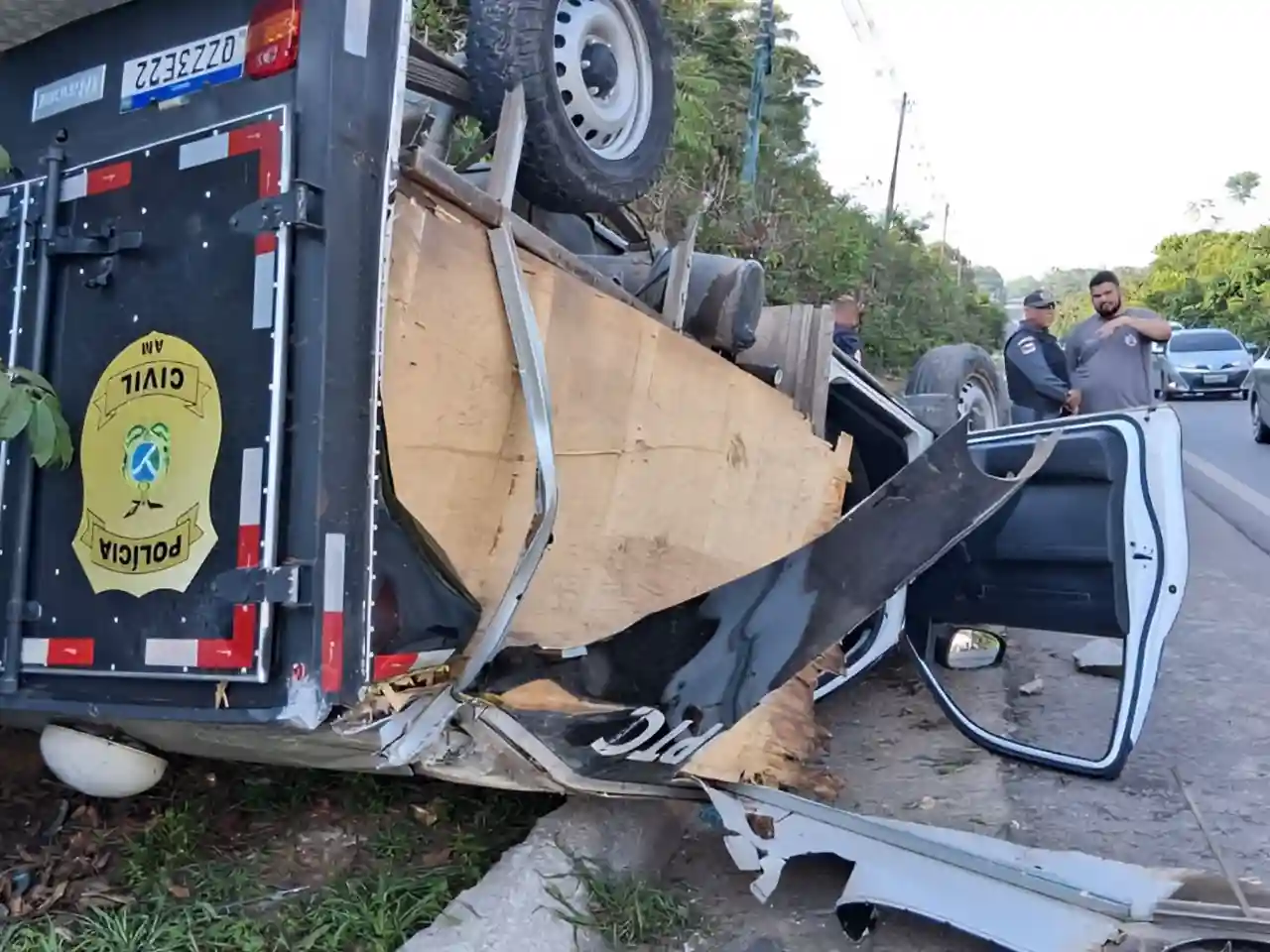 Dentro da viatura estavam o motorista e um assistente técnico de necropsia, além do corpo de uma vítima que havia sido recolhido em Presidente Figueiredo. Ambos os servidores ficaram feridos, mas conscientes, e foram socorridos por uma ambulância do Serviço de Atendimento Móvel de Urgência (SAMU). Eles foram encaminhados para uma unidade hospitalar em Manaus, onde permanecem em observação.